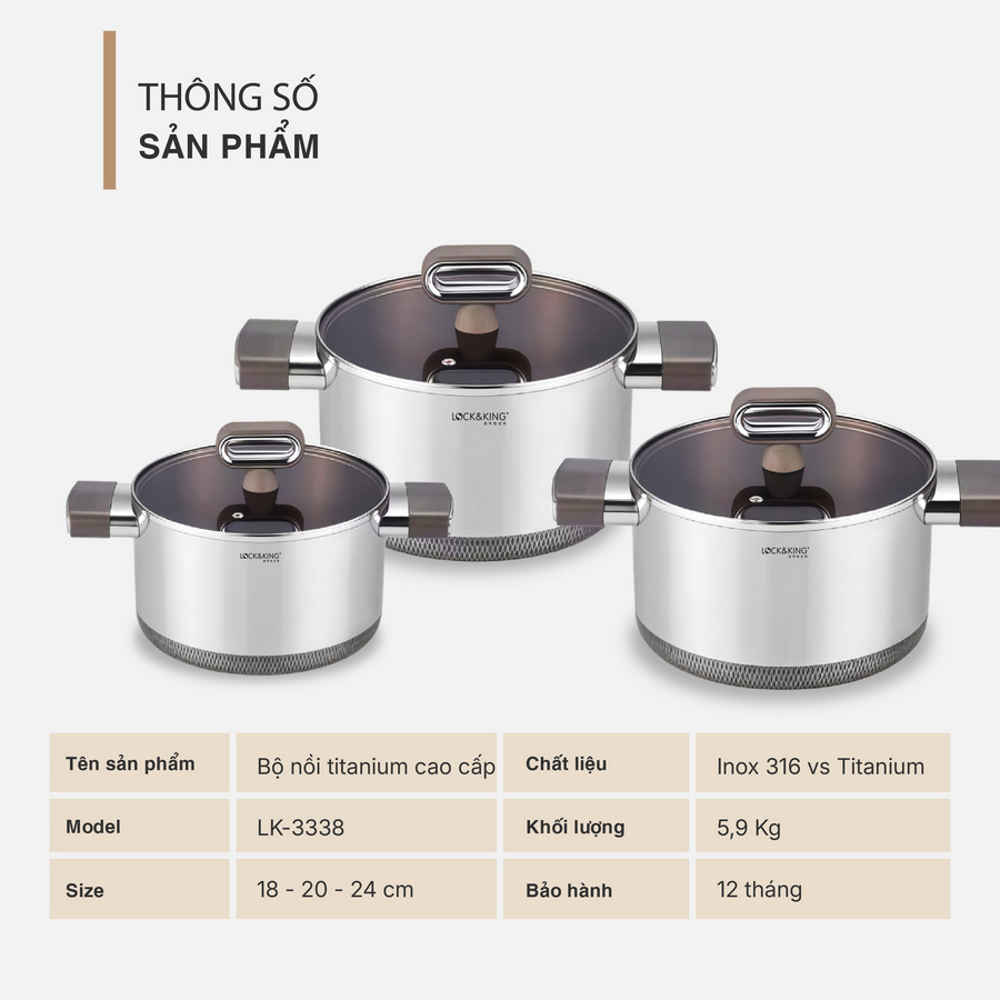 Bộ nồi Titanium cao cấp LK-3338 được phát triển từ cảm hứng ẩm thực Hàn Quốc, nơi mỗi bữa ăn không chỉ đơn thuần là nhu cầu dinh dưỡng mà còn là sự gắn kết tinh tế.