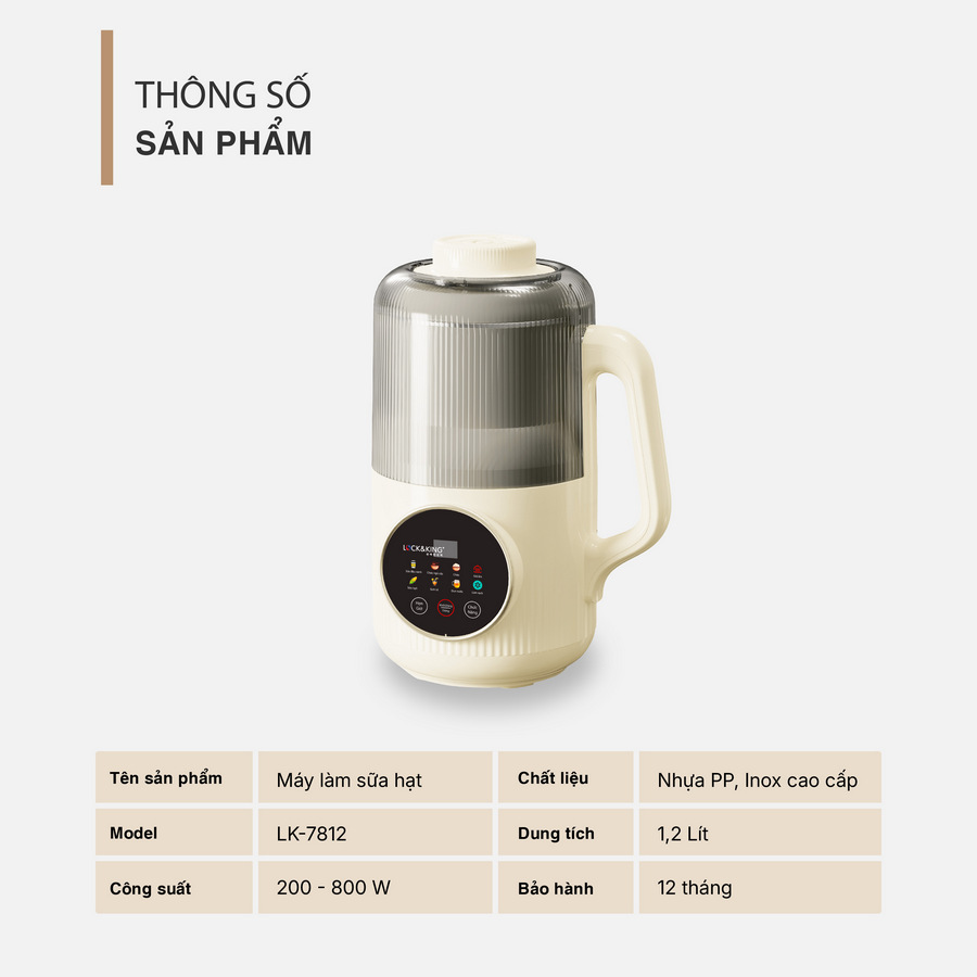 Các chức năng chính: Nấu Sữa đậu nành, Cháo, Súp, Sinh tố, Đun nước….