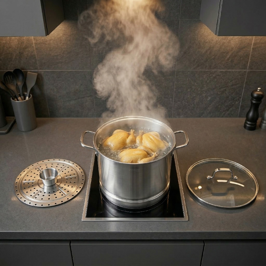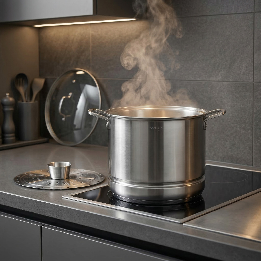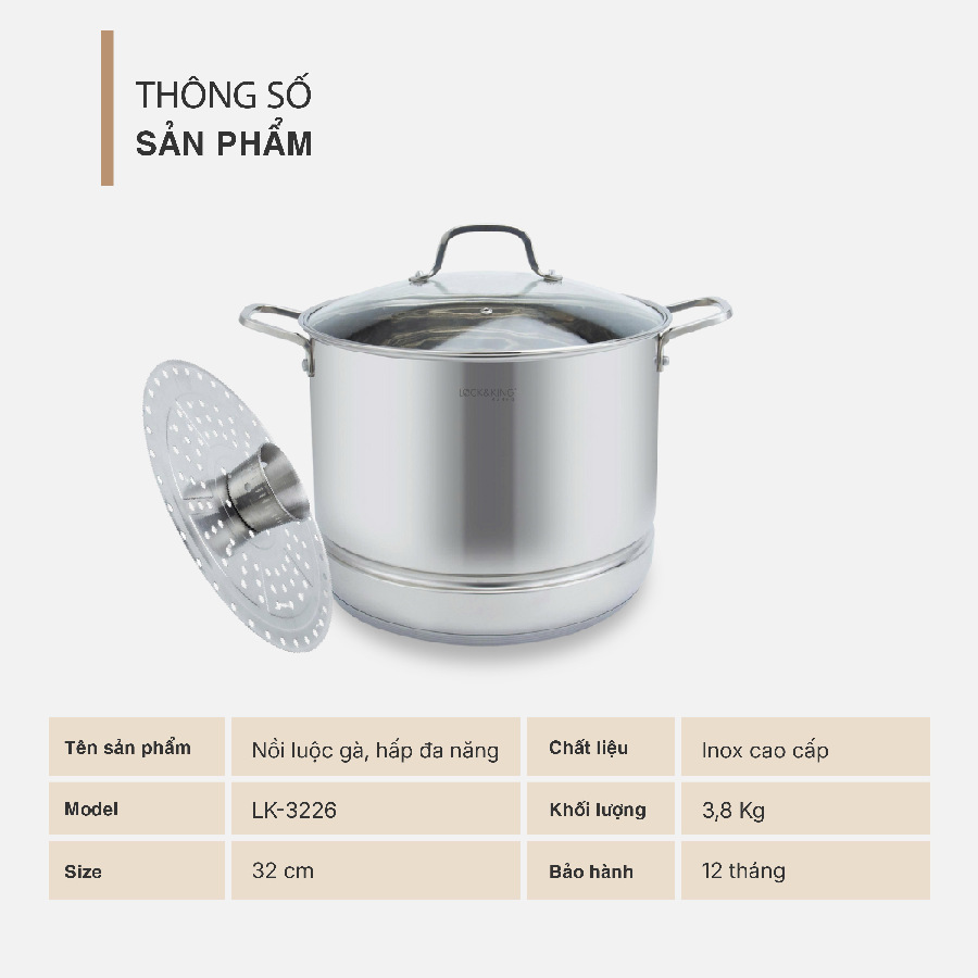 Lấy cảm hứng từ phong cách thiết kế tinh giản của Hàn Quốc, Nồi luộc gà, hấp đa năng Lock&King LK-3226 sở hữu diện mạo hài hòa giữa tính thẩm mỹ và sự tiện dụng. Sản phẩm giúp không gian bếp trở nên gọn gàng, hiện đại và đầy sức sống.