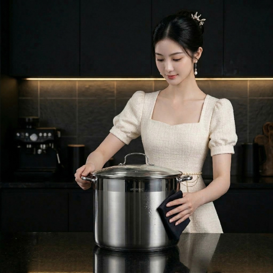Không chỉ phục vụ mục đích nấu nướng, chiếc nồi còn đóng vai trò như một điểm nhấn trang trí tinh tế. Sự kết hợp giữa công năng tiện dụng và vẻ đẹp hiện đại giúp không gian bếp trở nên sang trọng hơn, đồng thời tạo thêm cảm hứng cho mỗi lần vào bếp.