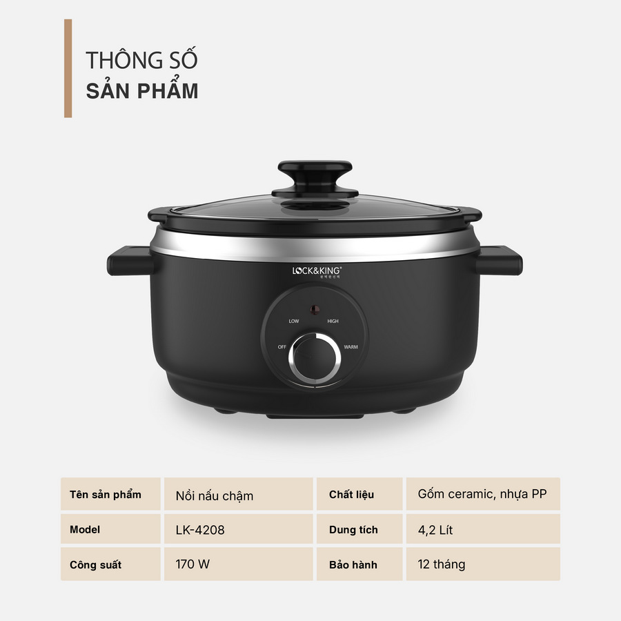Nồi nấu chậm Lock&King LK-4208 mang dấu ấn của nhịp sống chậm rãi kết hợp cùng phong cách thẩm mỹ hiện đại từ Hàn Quốc. Không chỉ phục vụ việc nấu nướng, sản phẩm còn phù hợp với những ai theo đuổi lối sống tối giản, tiện nghi và cân bằng trong không gian bếp.