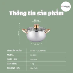 Nồi Inox 5 Đáy Cao Cấp Lock&King LK-3024 – Hoàn thiện trải nghiệm nấu nướng đẳng cấp